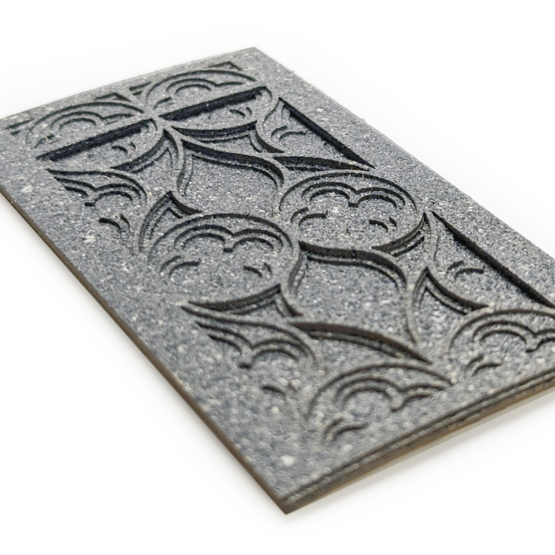 A combination of traditional and non-traditional materials has been used to create this stunning textured result. The decorative outside is constructed from a laminated high-density cellulose composite.