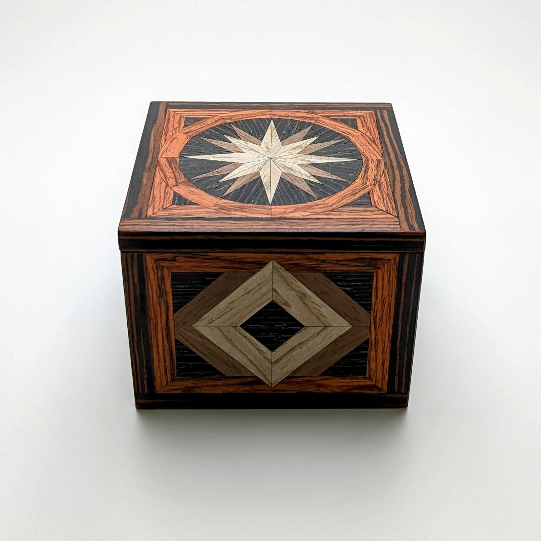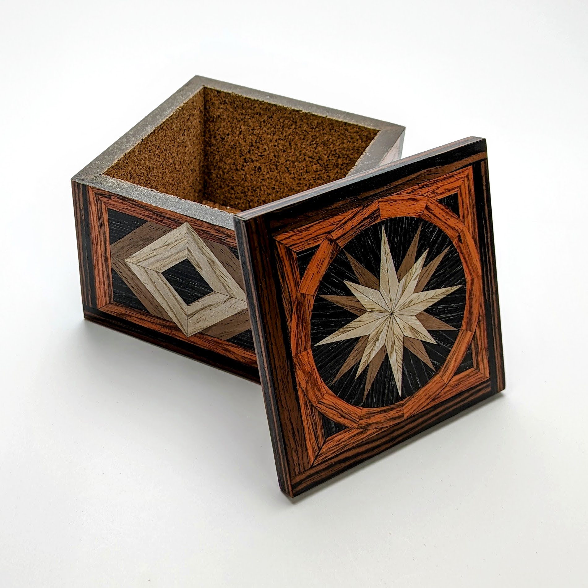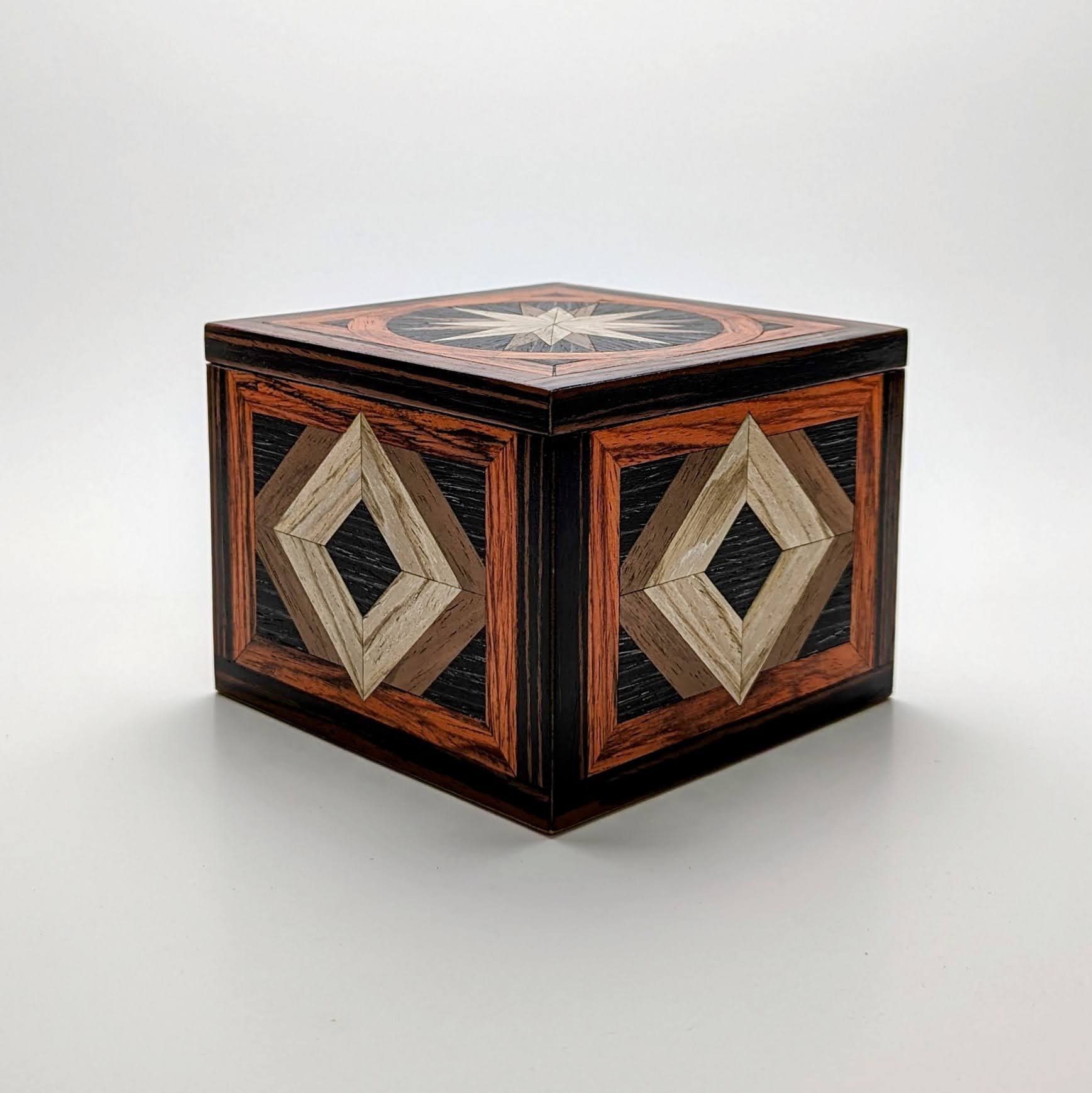 Featuring veneers of Siberian Oak, Walnut, Black Oak, Flame Mahogany and Red Ebony, this box has been crafted using woods from around the globe.