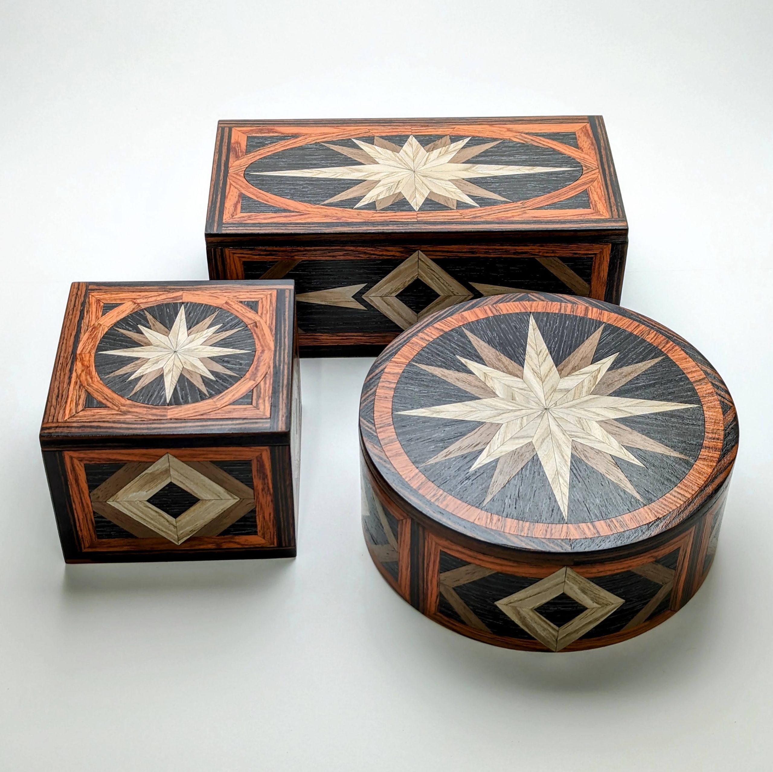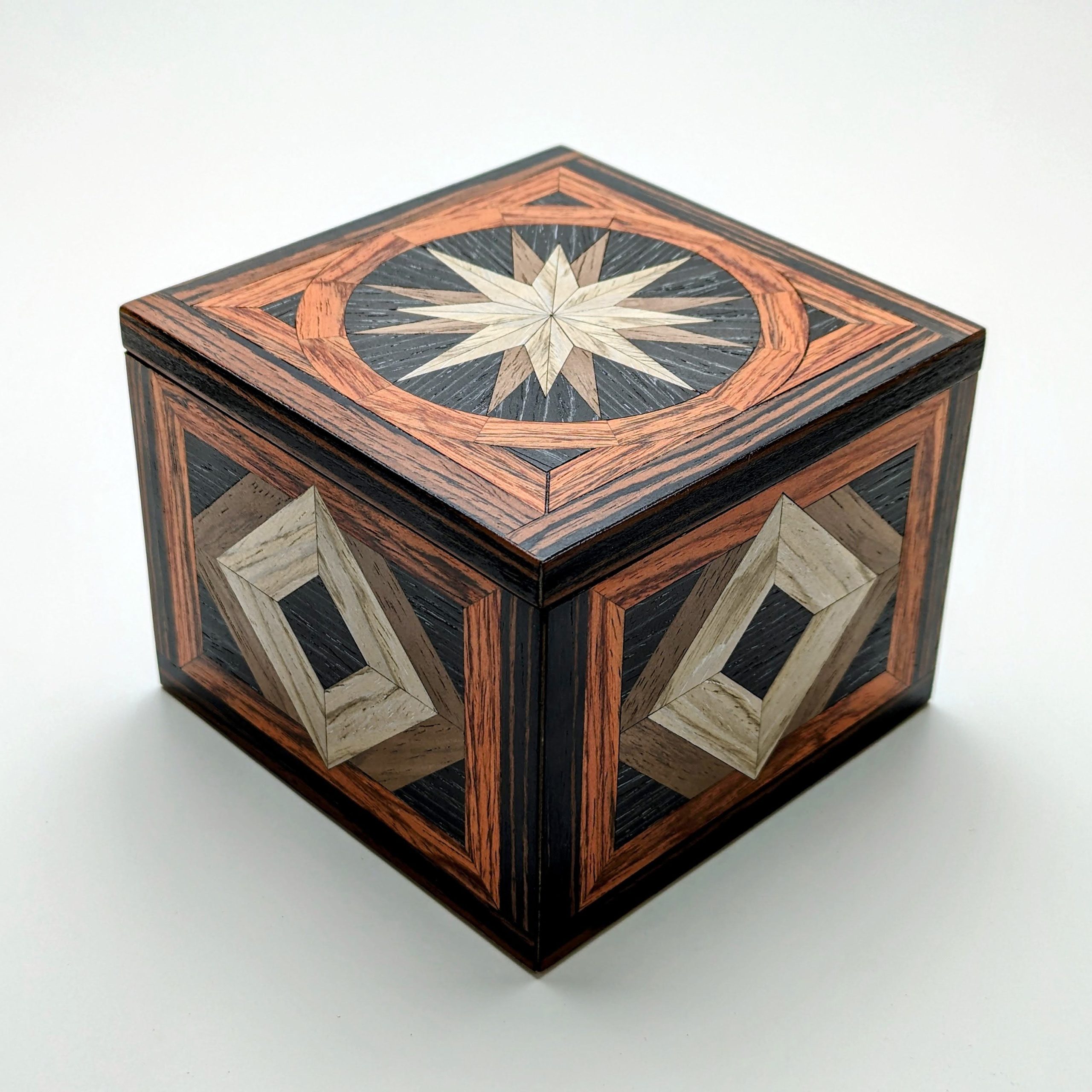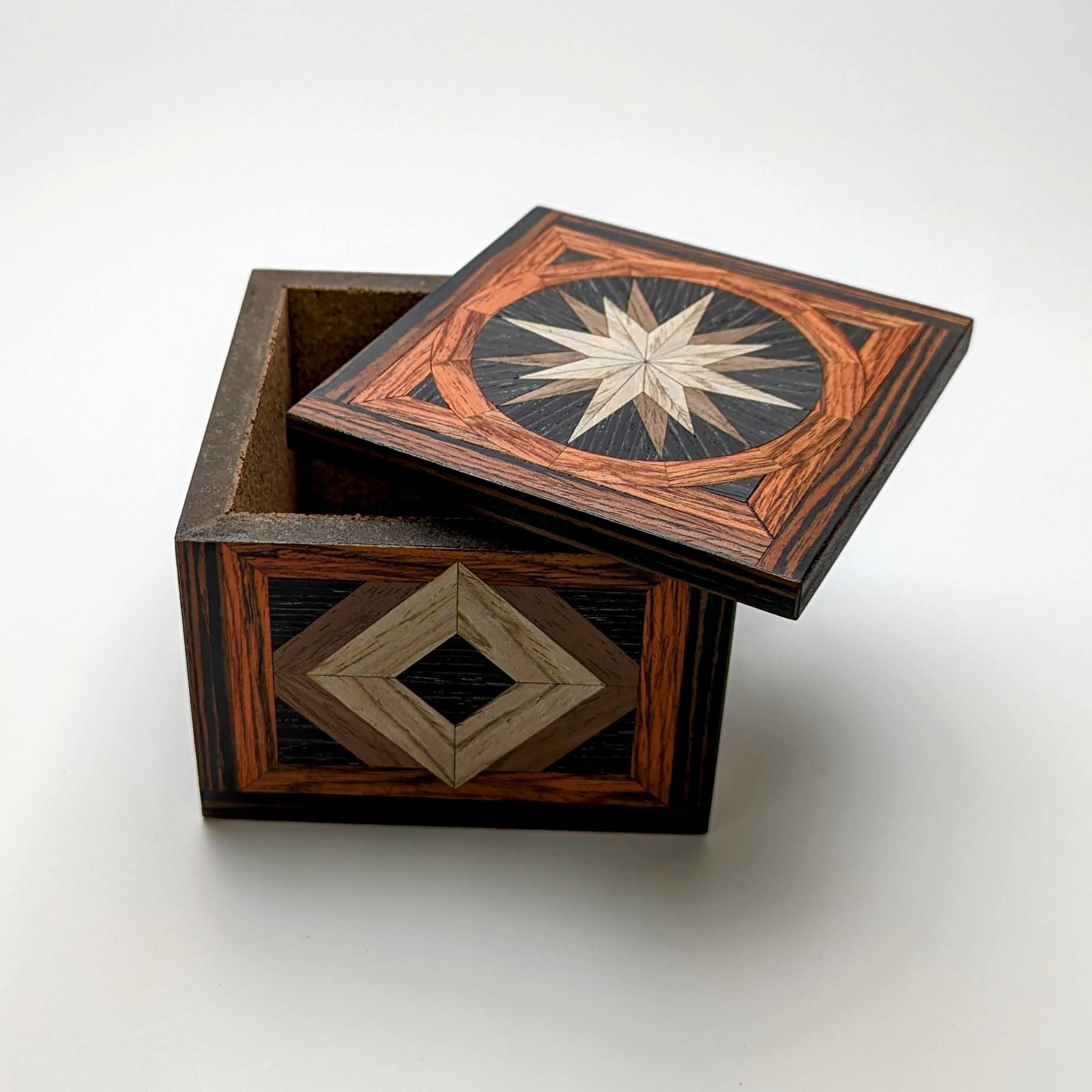 Featuring veneers of Siberian Oak, Walnut, Black Oak, Flame Mahogany and Red Ebony, this box has been crafted using woods from around the globe.