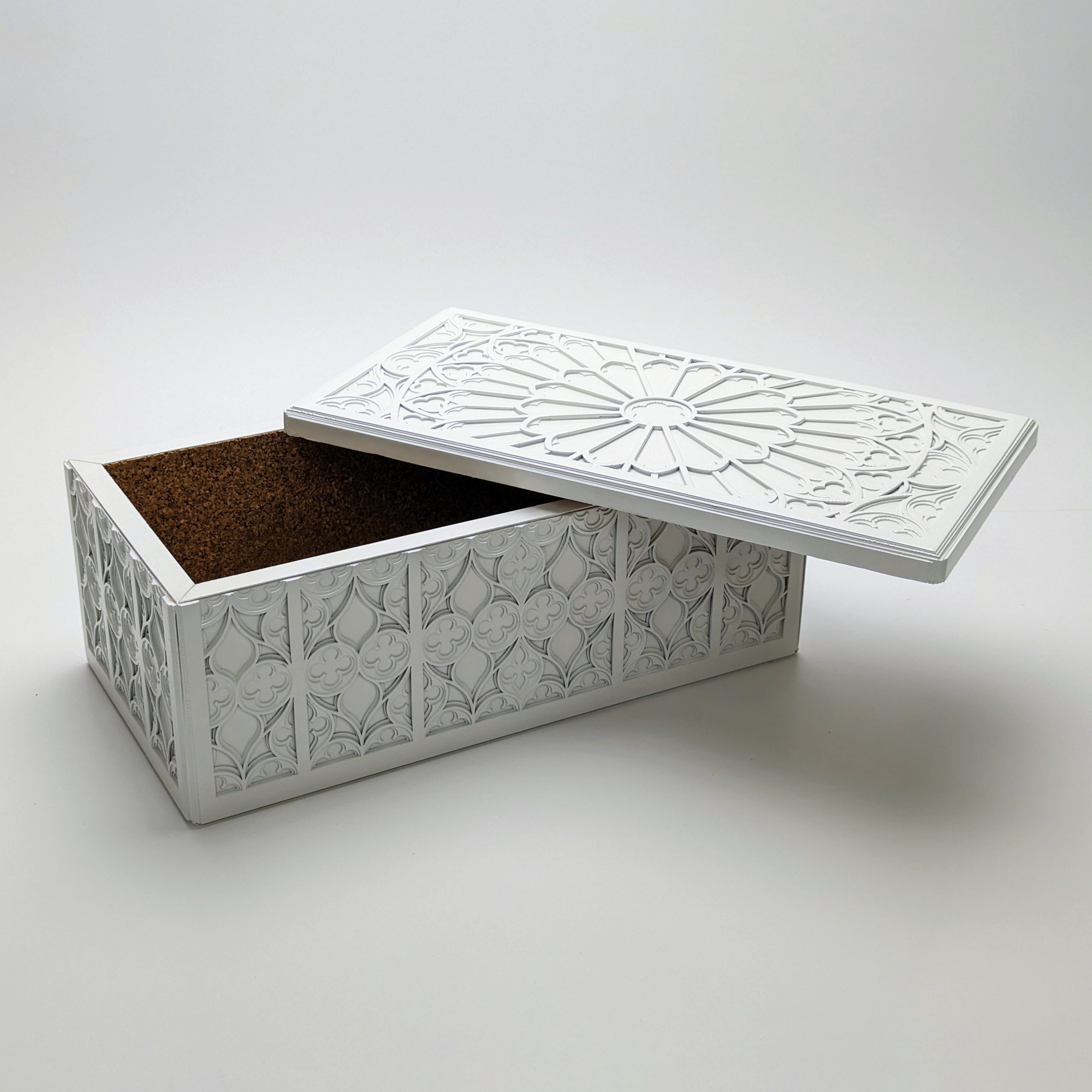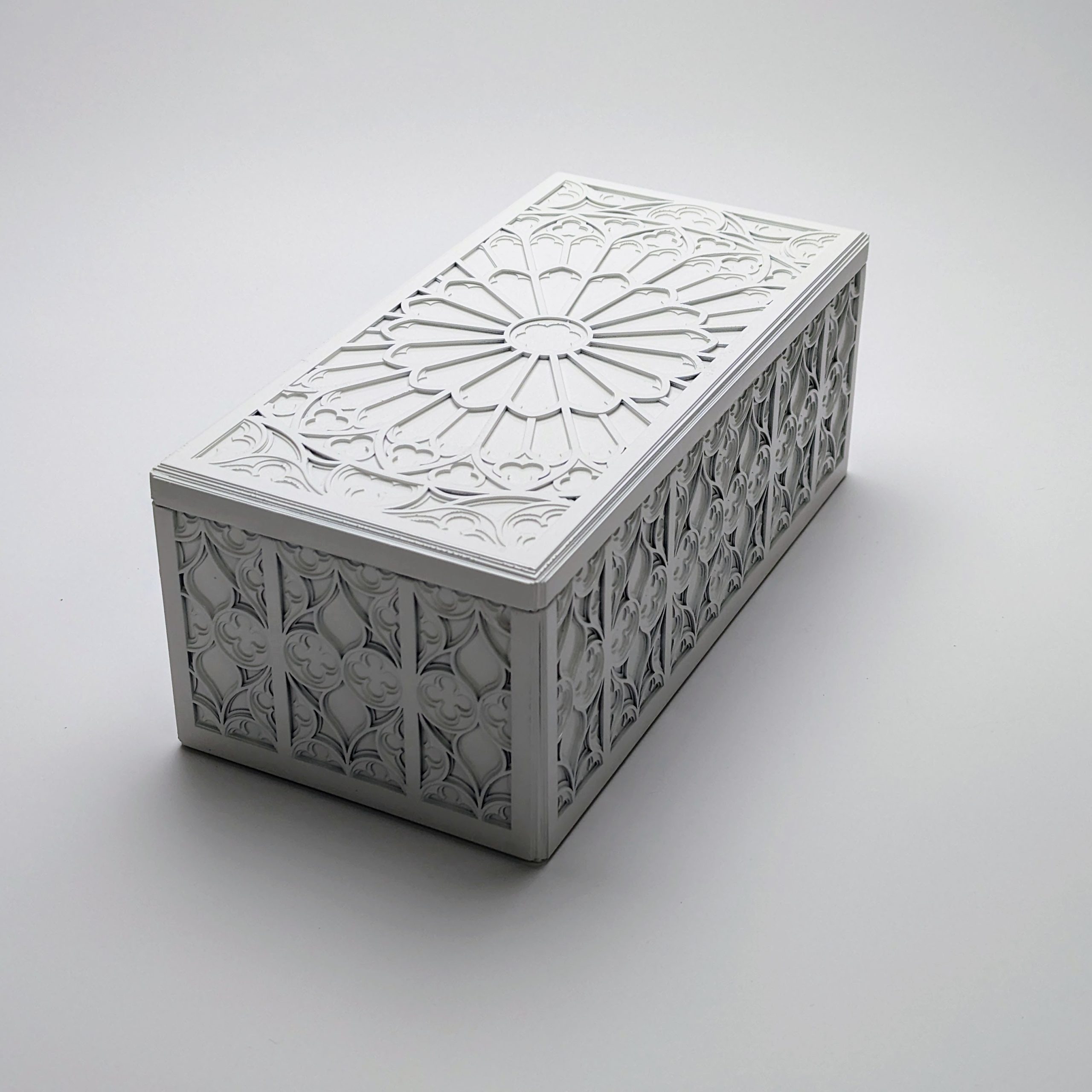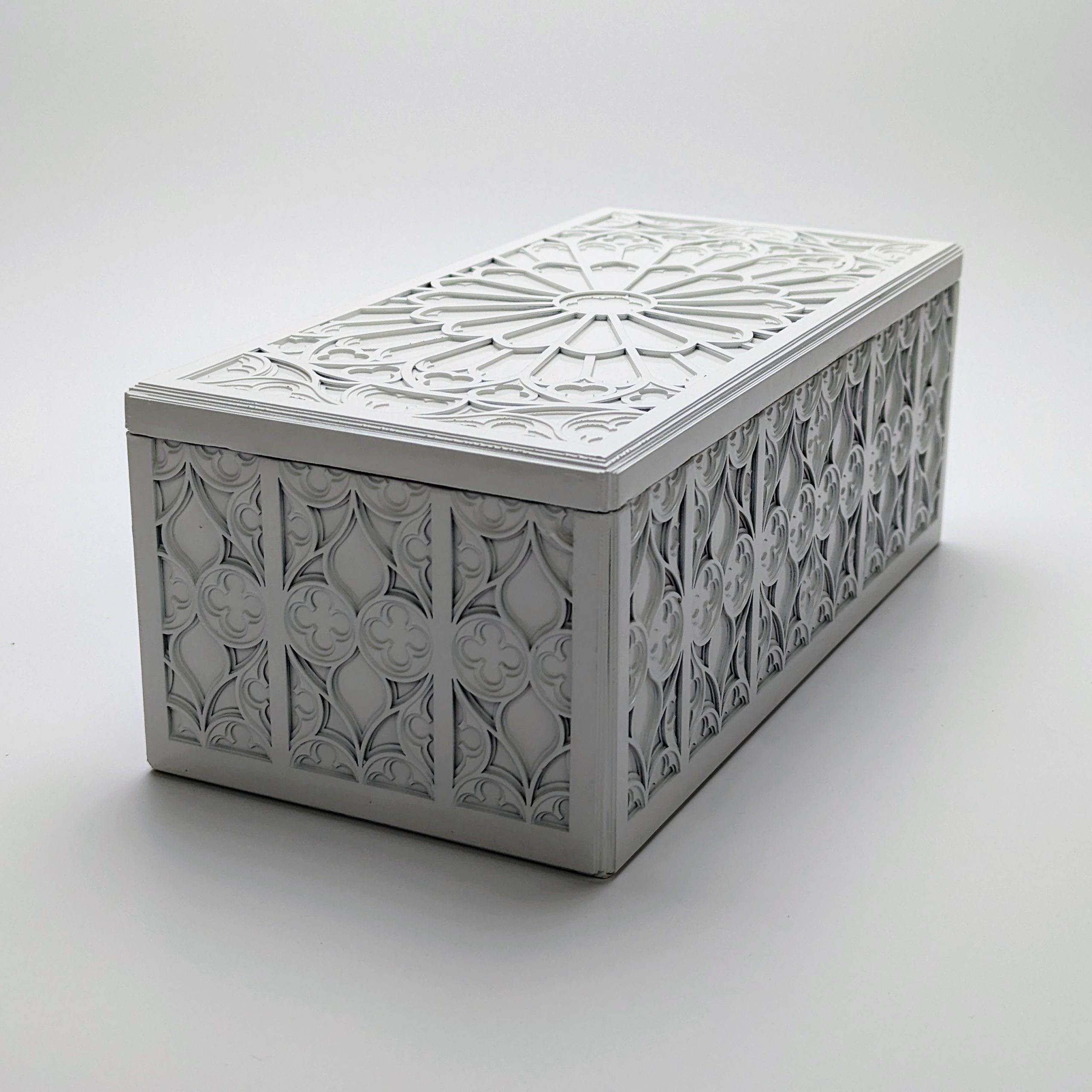Designed for the lover of fine details, this box showcases the complexity of traditional Gothic motifs through a contemporary lens.