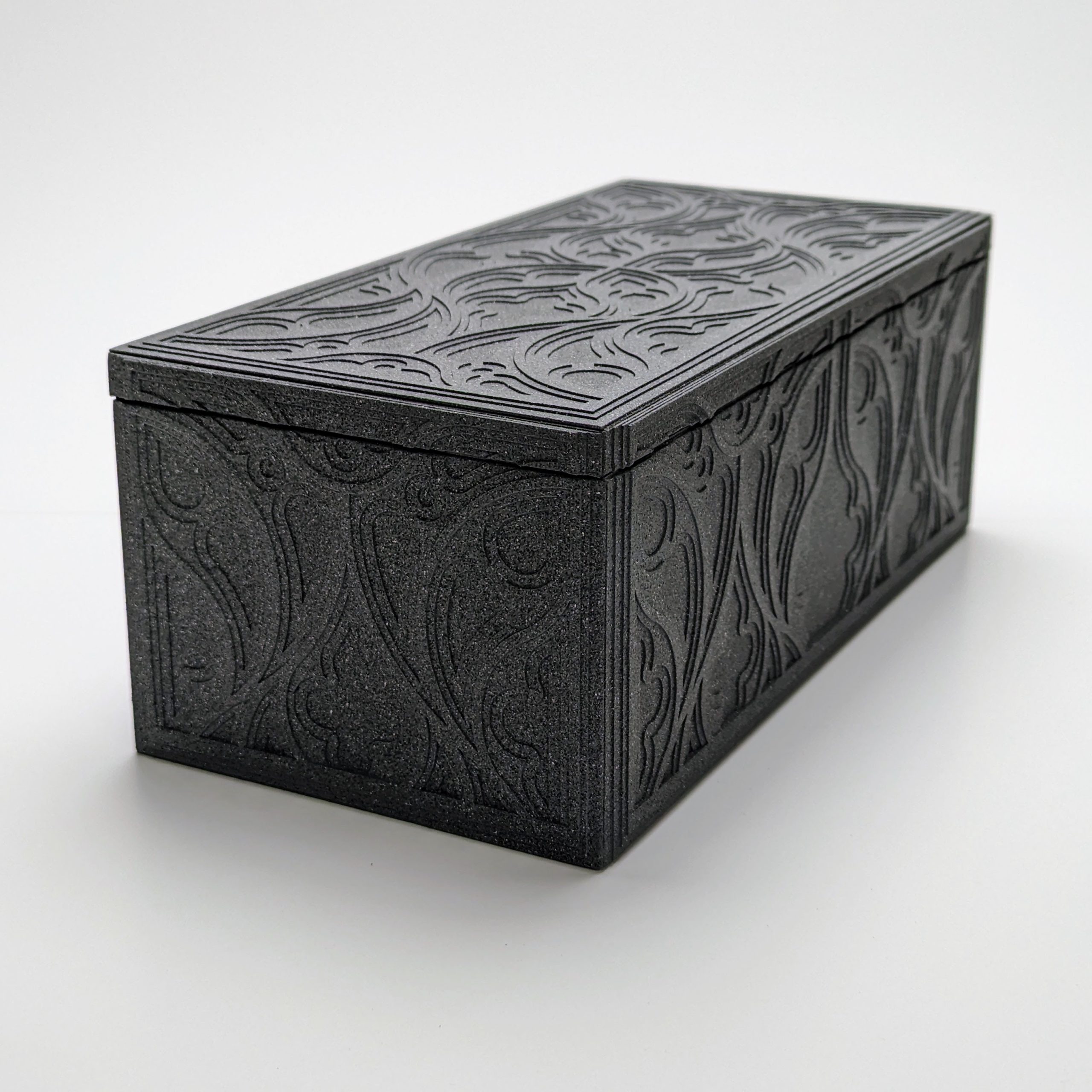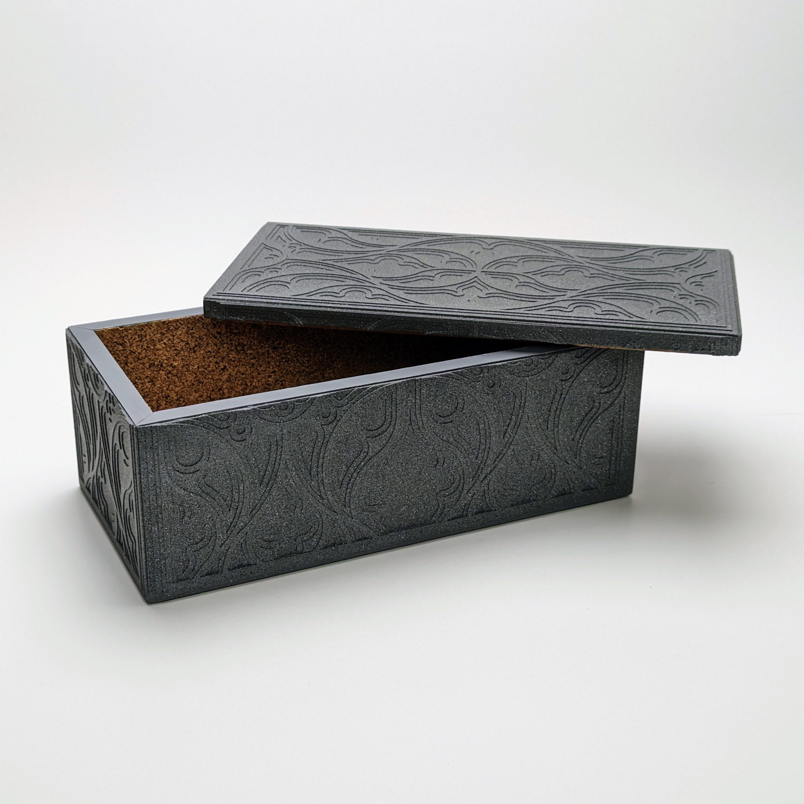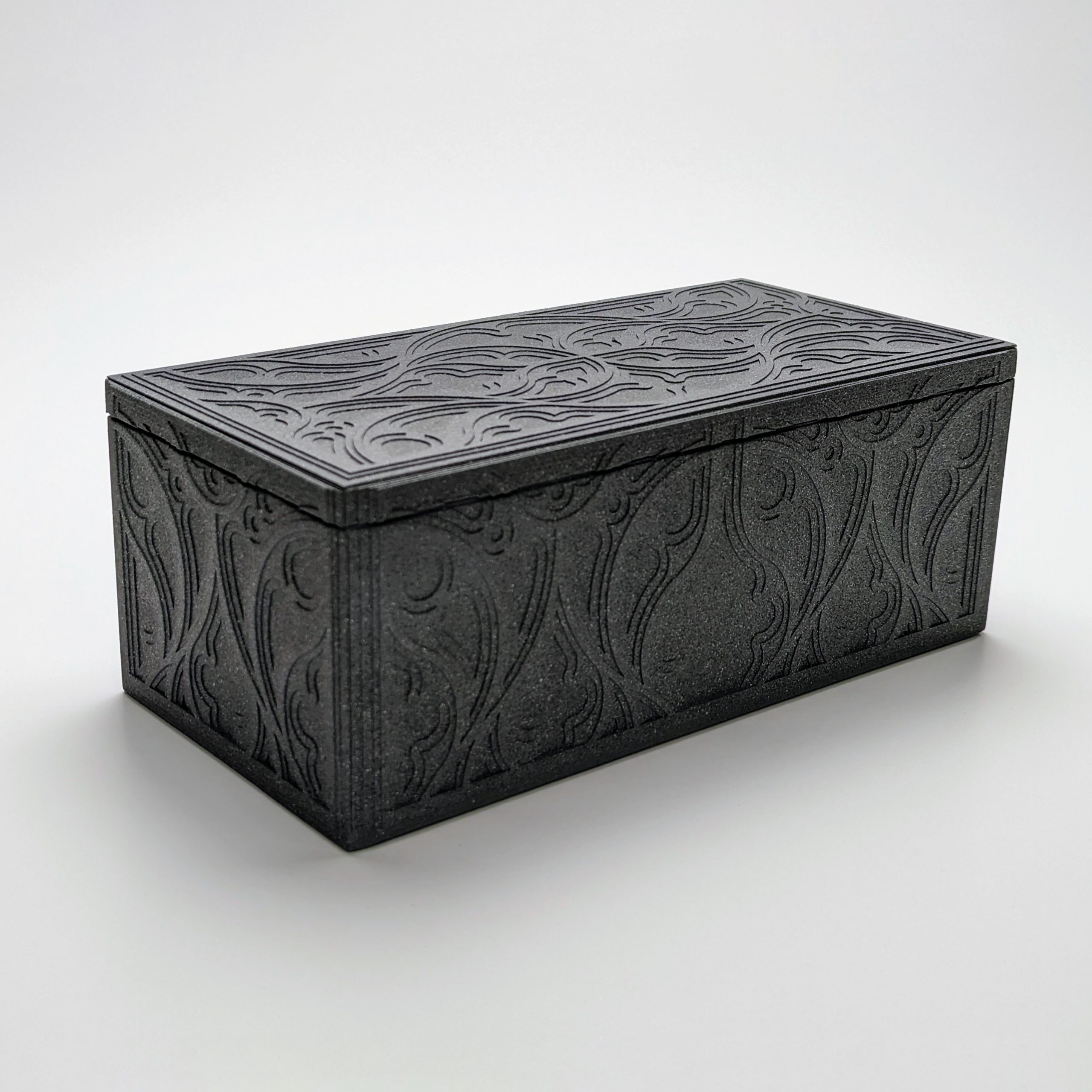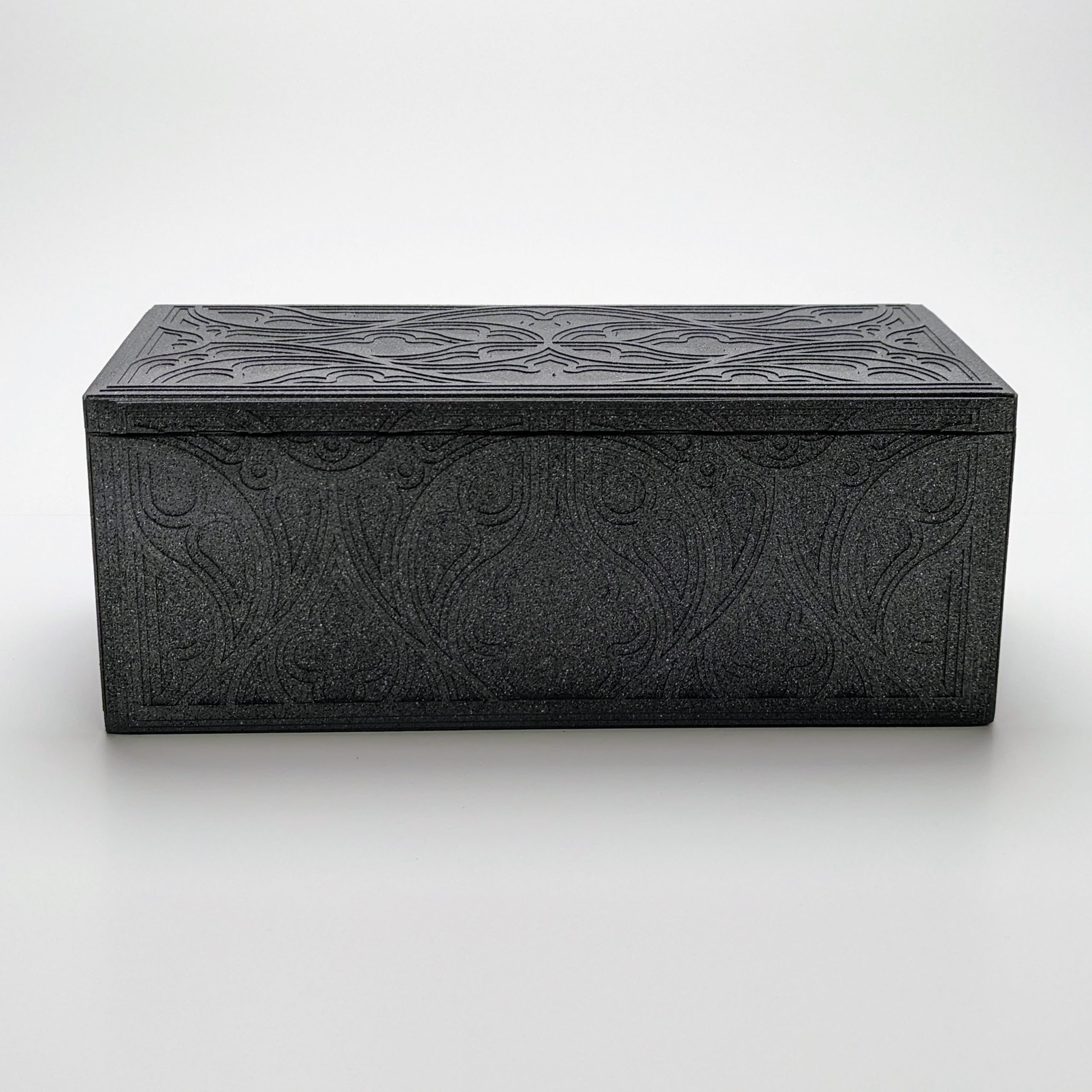 Evoke the clean precision of ancient masonry with this handcrafted marquetry piece. Finished in a stone effect patina, this box captures the look of carved stone. The intricate Vamp tracery creates a stunning relief of mirrored arches, offering a tactile experience that feels like a rediscovered artifact. It is a soulful, sophisticated accent for a home rooted in history and timeless craft.