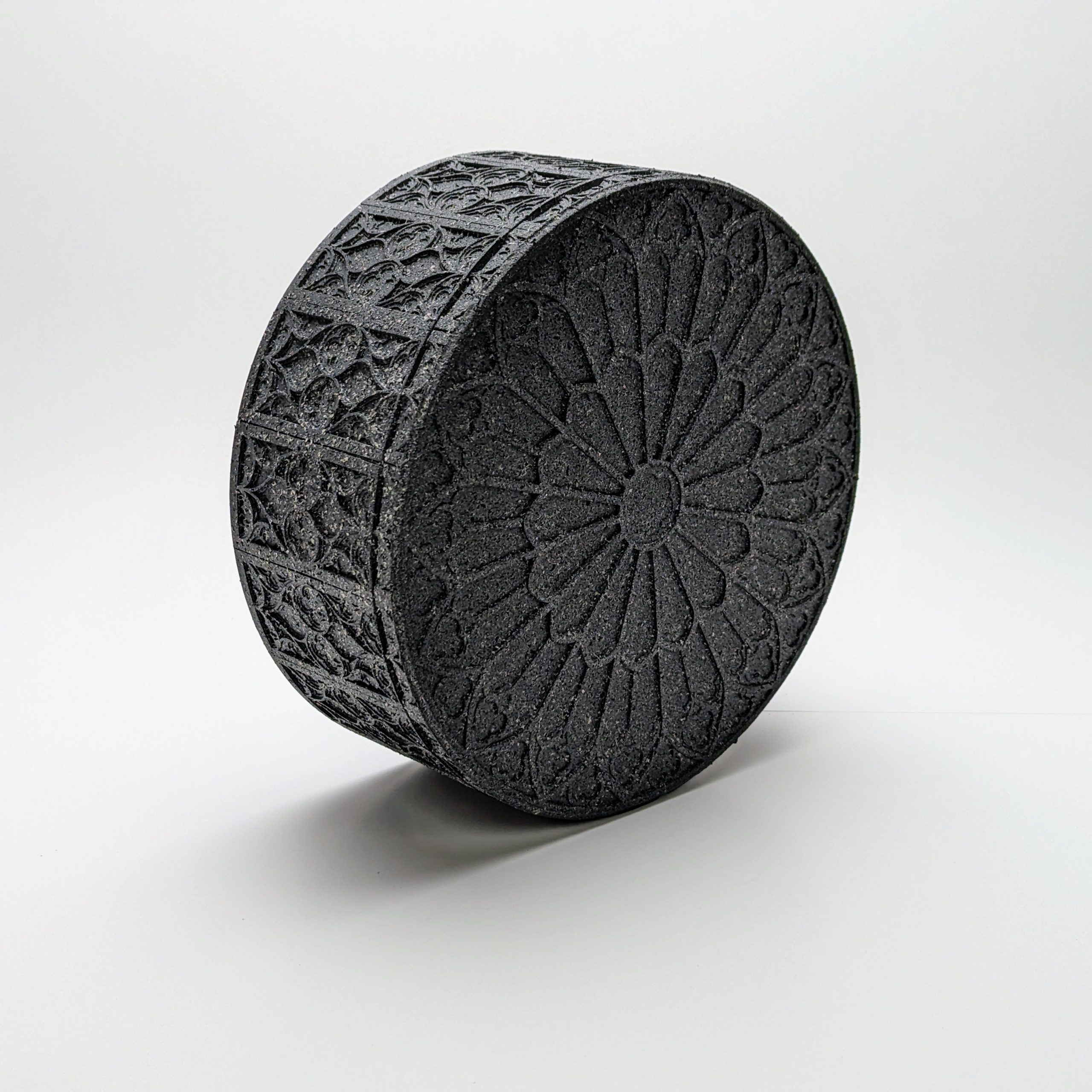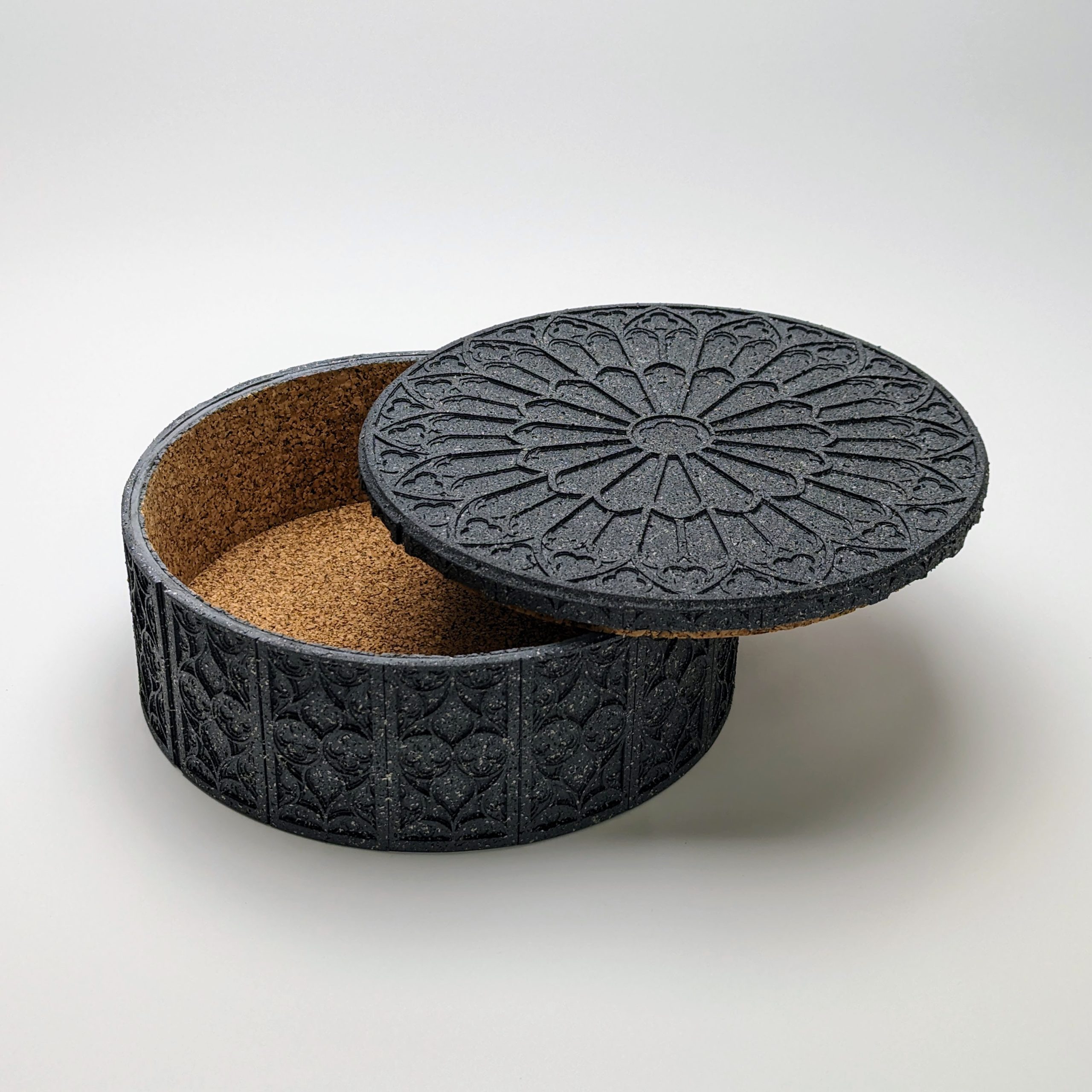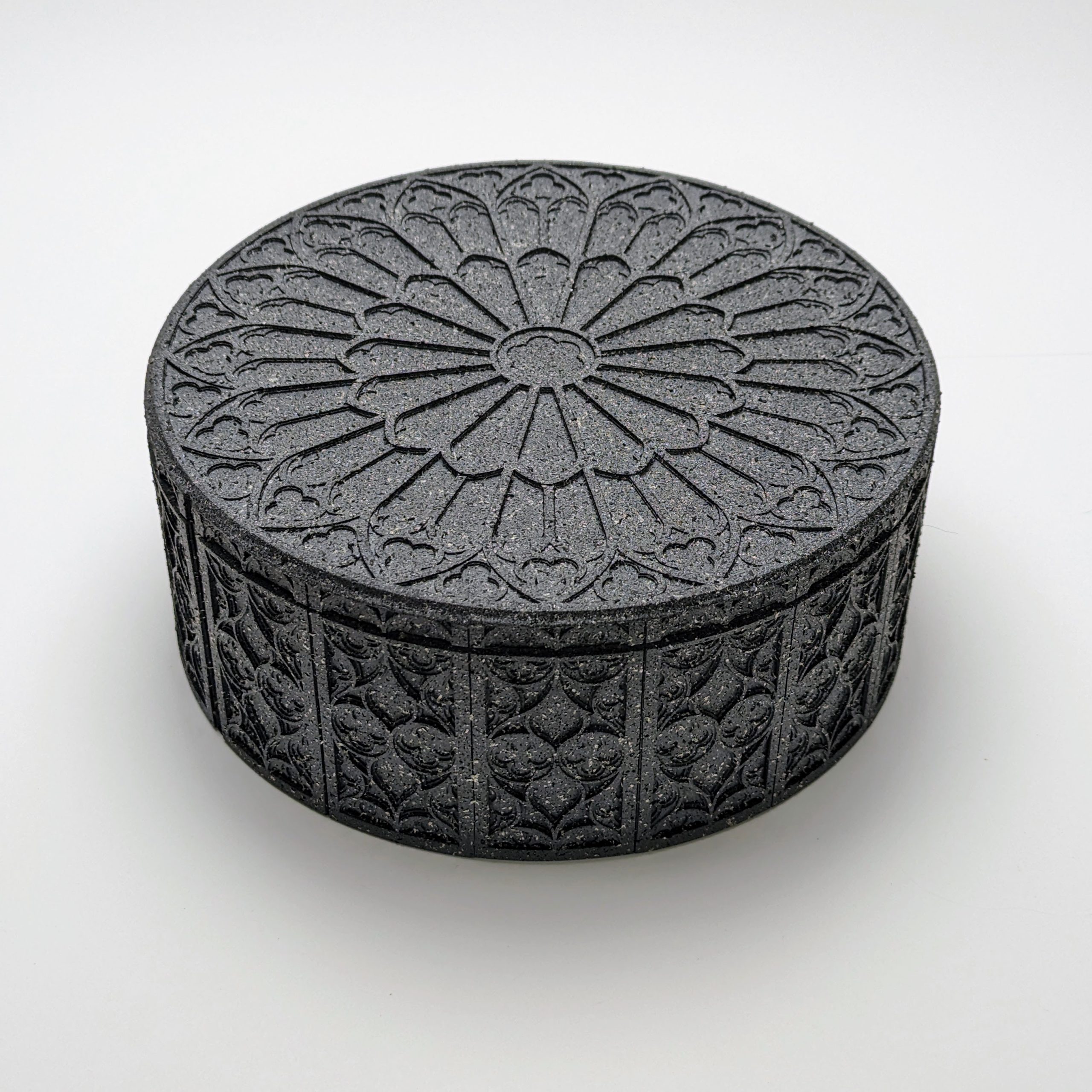 The grandmother of the Gothic collection, this round box perfectly suits the stunning rose window design featured on the lid. Designed for the lover of fine details, this box showcases the complexity of traditional Gothic motifs through a contemporary lens. Perfect for a desk, side table or decorative shelf.